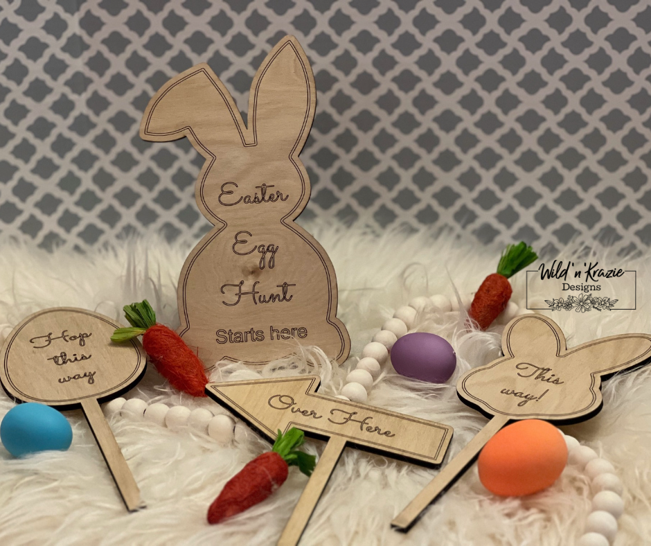 Take your Easter Egg hunt to the next level with our stunning signs. These re-usable wooden Easter Egg Hunt Sign Sets are the perfect way to bring Easter magic to your home or garden this Easter! Place the signs in the grass and let them direct the children to where they can find Easter treasures!