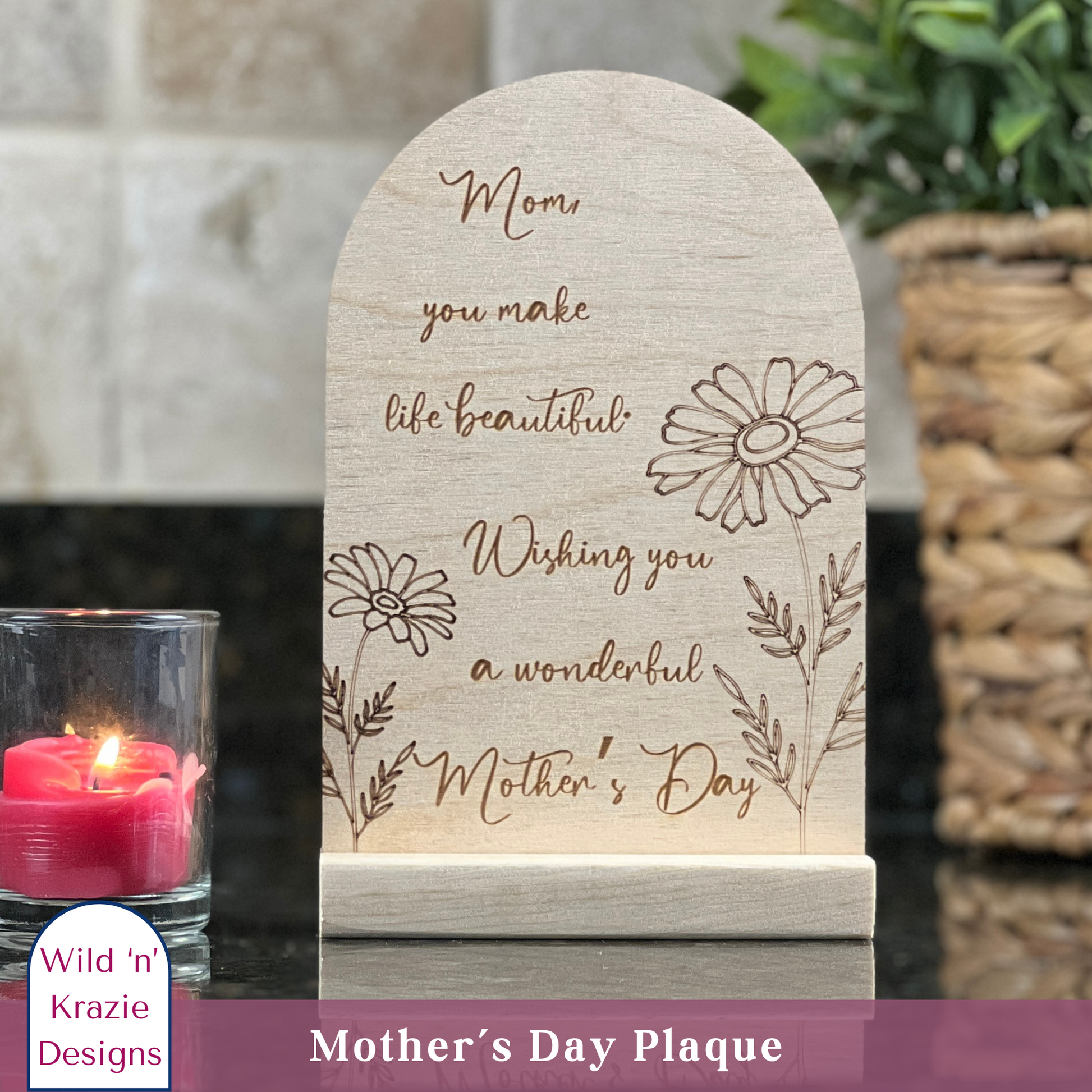 Looking for a heartfelt gift that Mom will treasure? These handmade wooden Mother’s Day plaques from Wild ‘n’ Krazie Designs are the perfect way to show your love. Choose from 14 different designs, each made from 1/8" Baltic birch and finished with care.